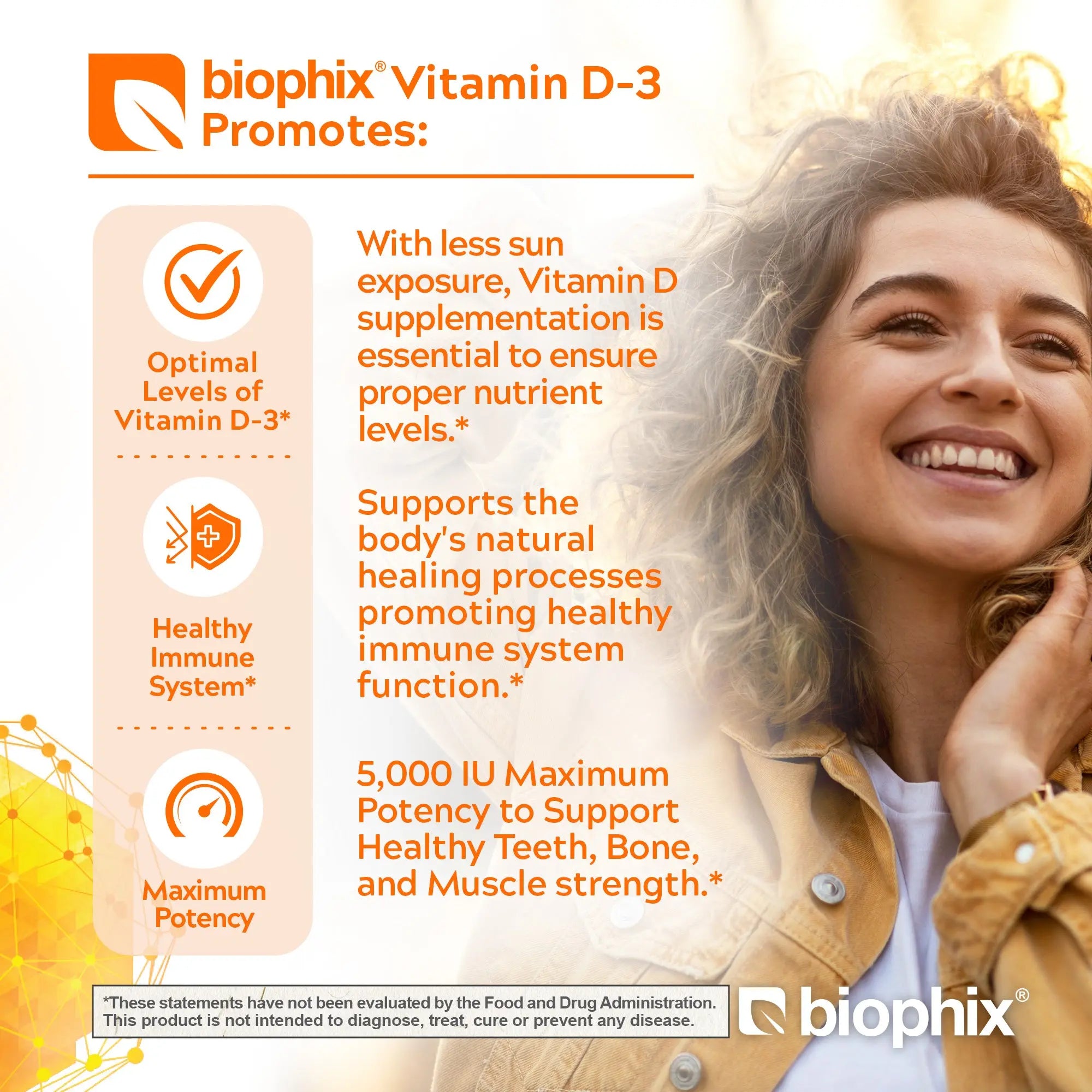 Biophix Vitamin D3 is available in 2000 IU, 5000 IU, 10000 IU and 50000 IU. Also available in Tablets, Capsules, Liquid Drops and Vegetarian Capsules. Search for Biophix D3 to see all available options.