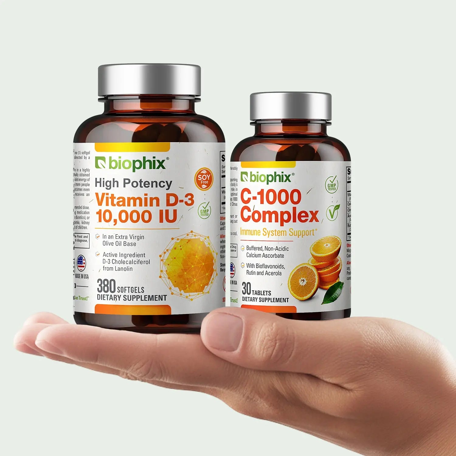 Vitamin D-3 10000 IU High-Potency 380 Softgels with Free Vitamin C-1000 30 Tablets