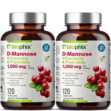 D-Mannose is a simple sugar that occurs naturally in some plants, including cranberries. Although small amounts of D-Mannose are metabolized by the human body, much of it is rapidly excreted in the urine. Biophix D-Mannose features a blend of whole cranberry fruit juice with a unique probiotic profile that supports the maintenance of a healthy urinary tract when used regularly.*