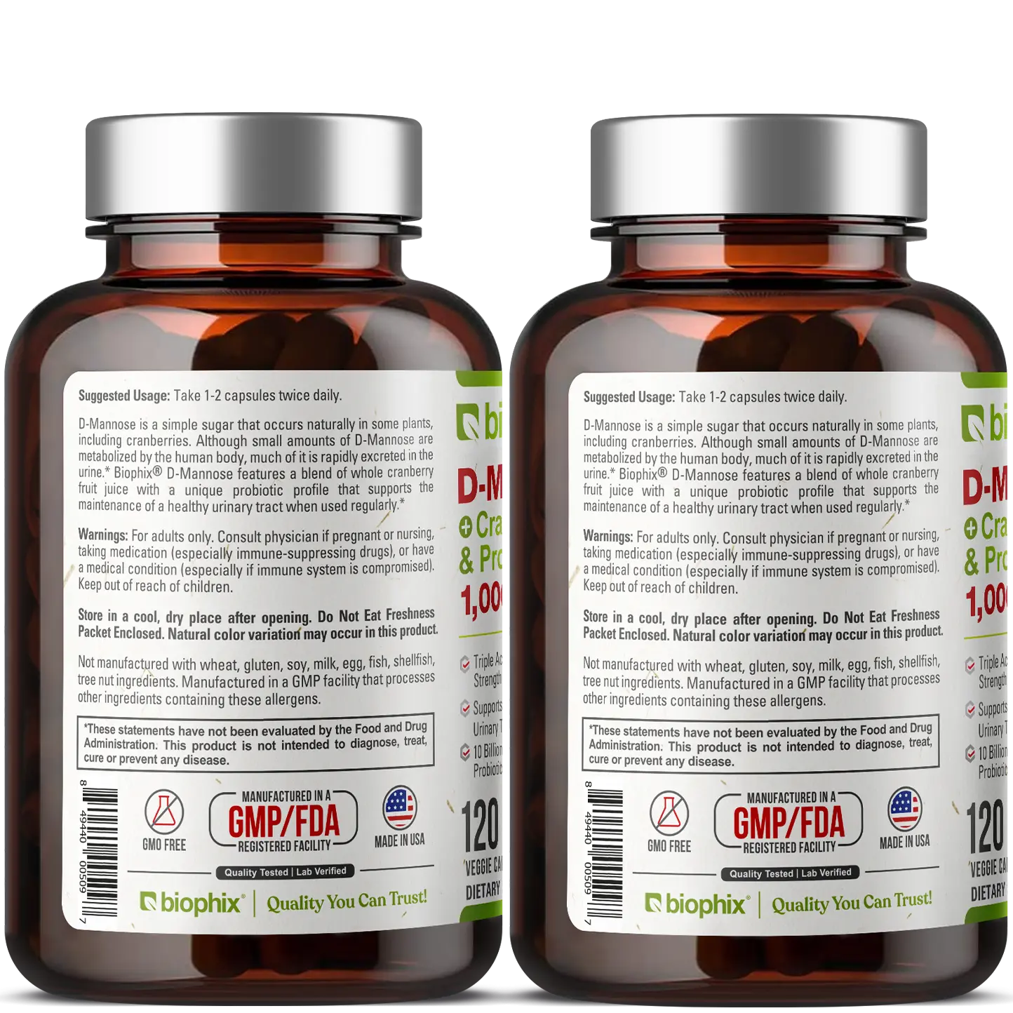 BIOPHIX QUALITY YOU CAN TRUST: Manufactured in the USA under strict GMP standards, our d-mannose with cranberry supplement is third-party tested to ensure safety, quality, and effectiveness