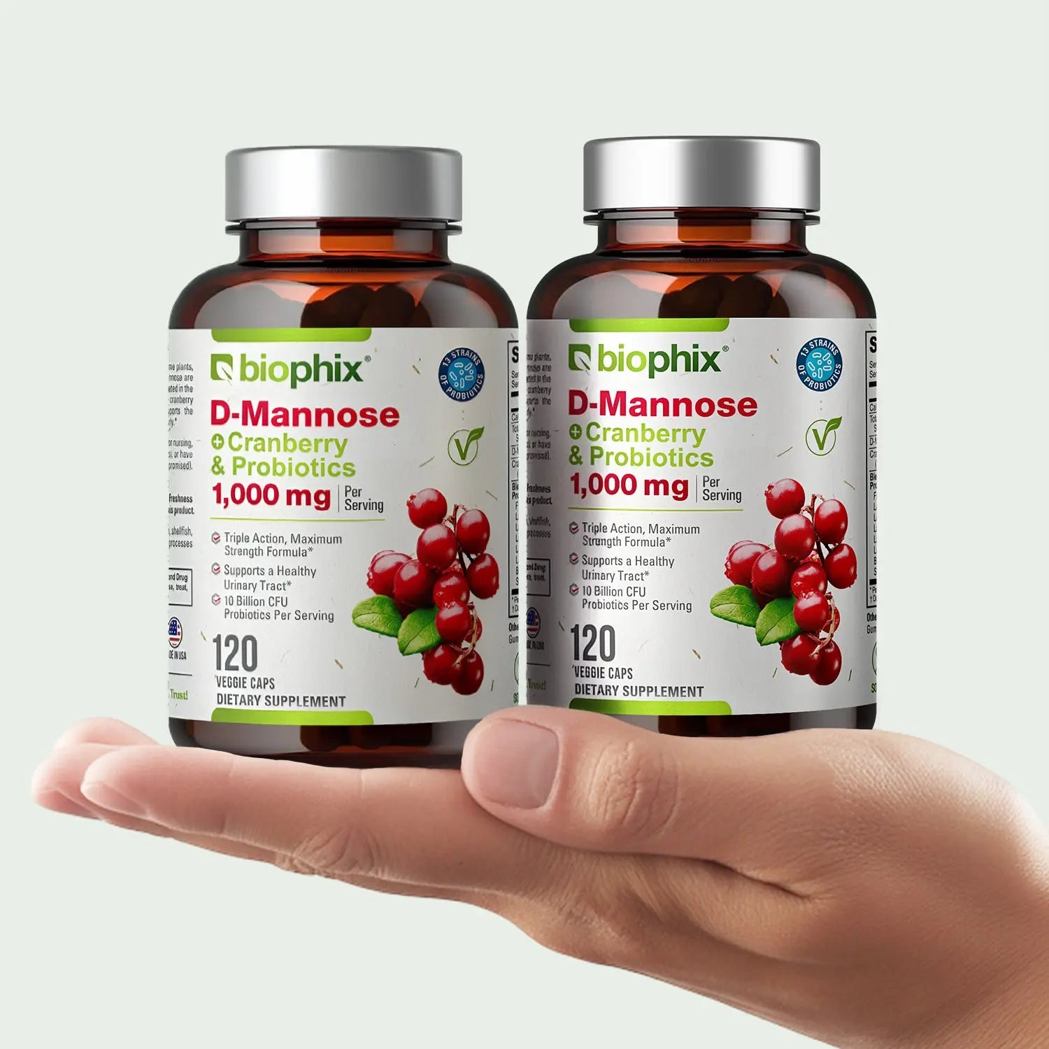 D-Mannose Plus Cranberry and Probiotics 1000 mg 120 Veggie Capsules - 2 Pack