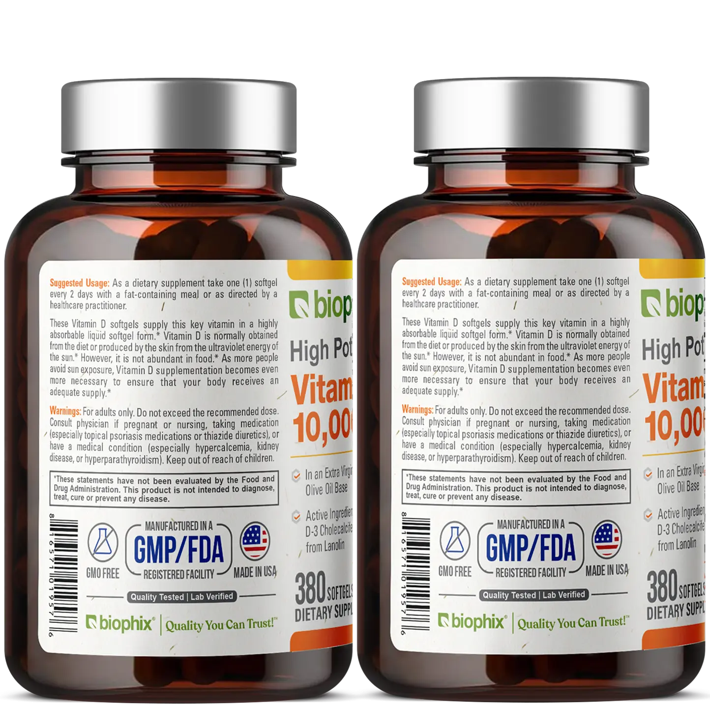 Biophix Vitamin D3 is available in 2000 IU, 5000 IU, 10000 IU and 50000 IU. Also available in Tablets, Capsules, Liquid Drops and Vegetarian Capsules. Search for Biophix D3 to see all available options.