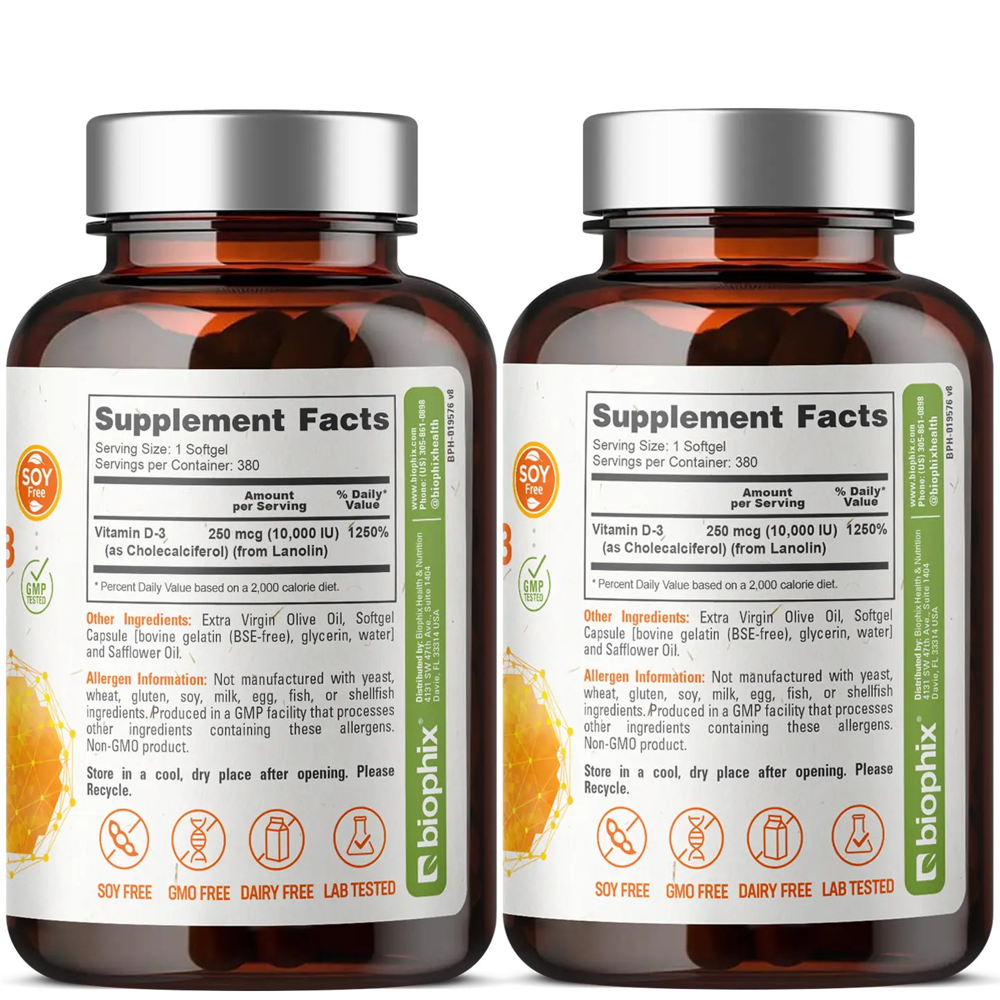 Vitamin D-3 10000 IU High-Potency 380 Softgels - 2 Pack