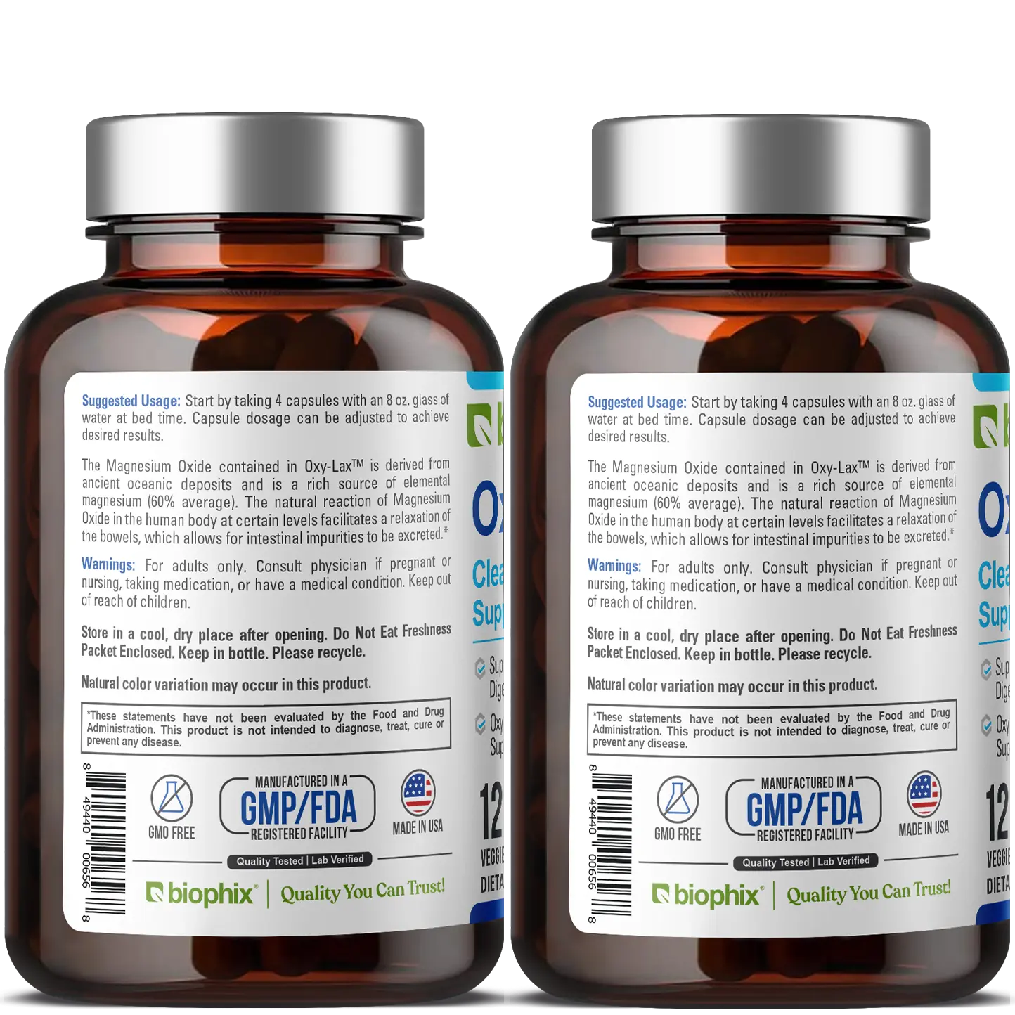 Choosing Biophix Oxy-Lax means opting for a product manufactured in our own cutting-edge NSF certified facility, adhering to strict cGMP standards to ensure safety and efficacy. With our easy-to-swallow, fast-release vegetarian capsules, incorporating Oxy-Lax into your daily routine is simple and hassle-free. These capsules are also ideal for individuals following an active vegetarian or vegan lifestyle.
