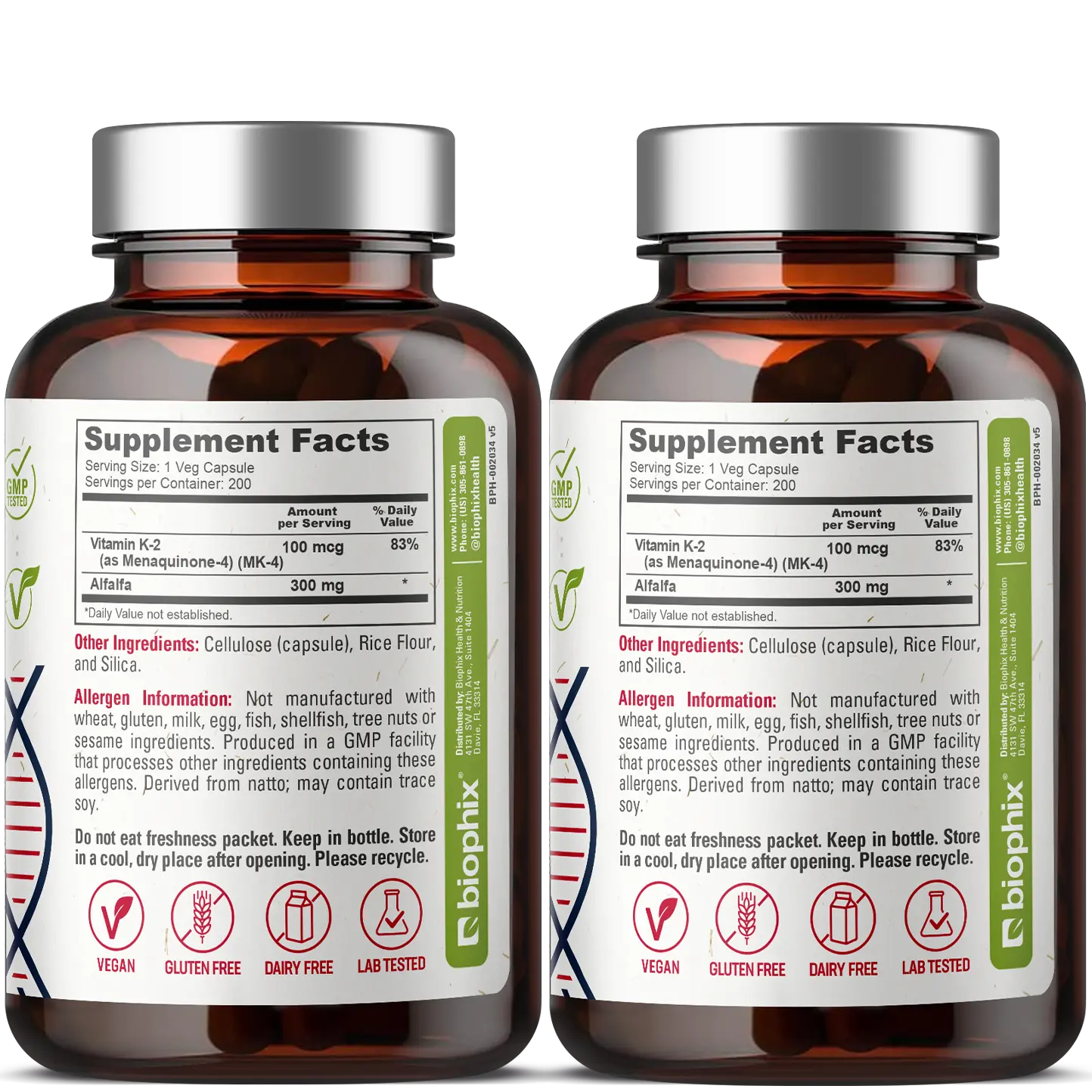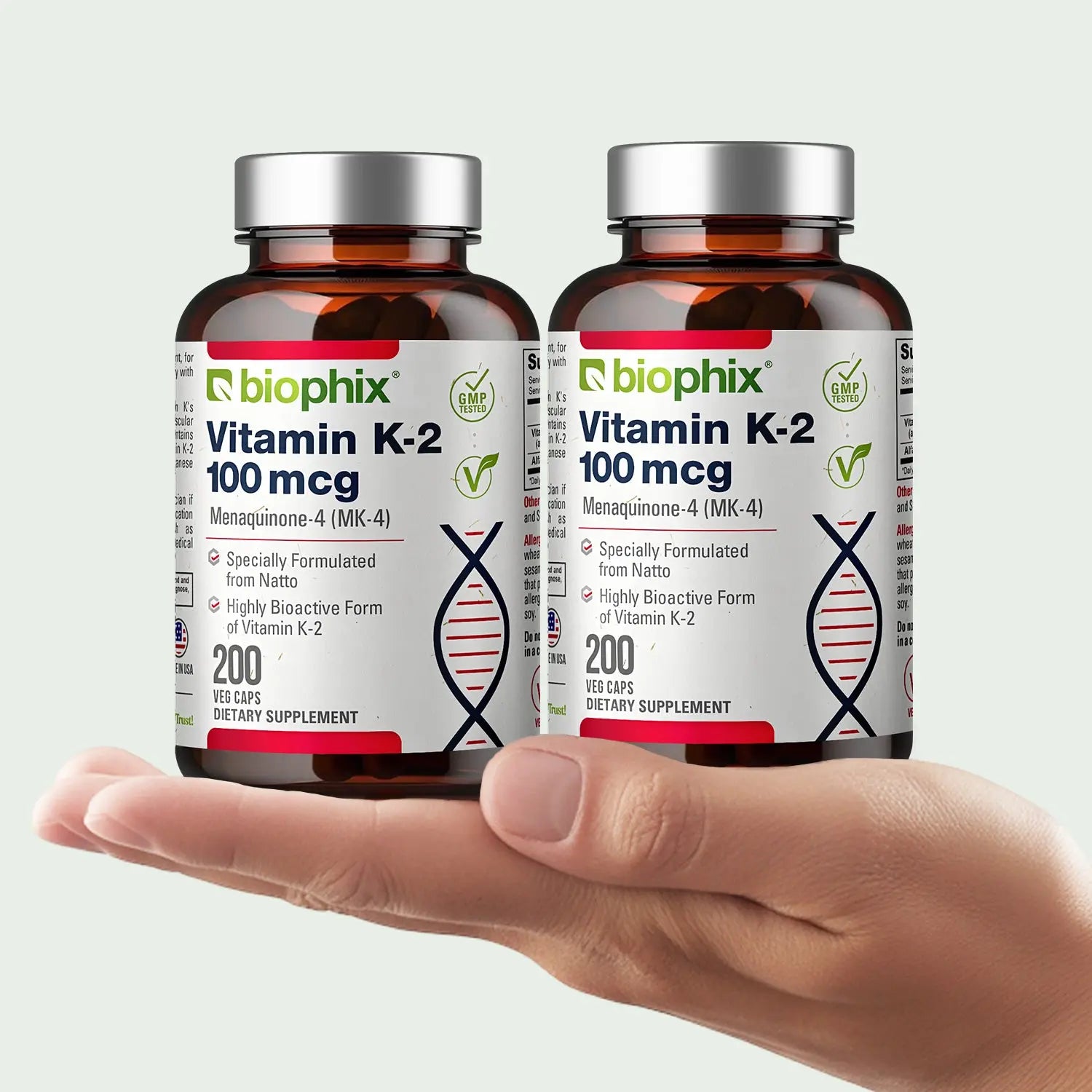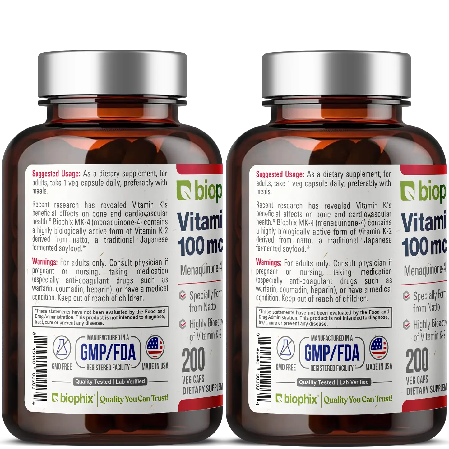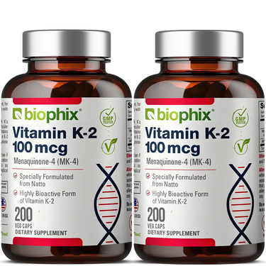 Vitamin K2 MK-4 High-Potency 100 mcg 200 Vegetarian Capsules with Alfalfa 2 Pack