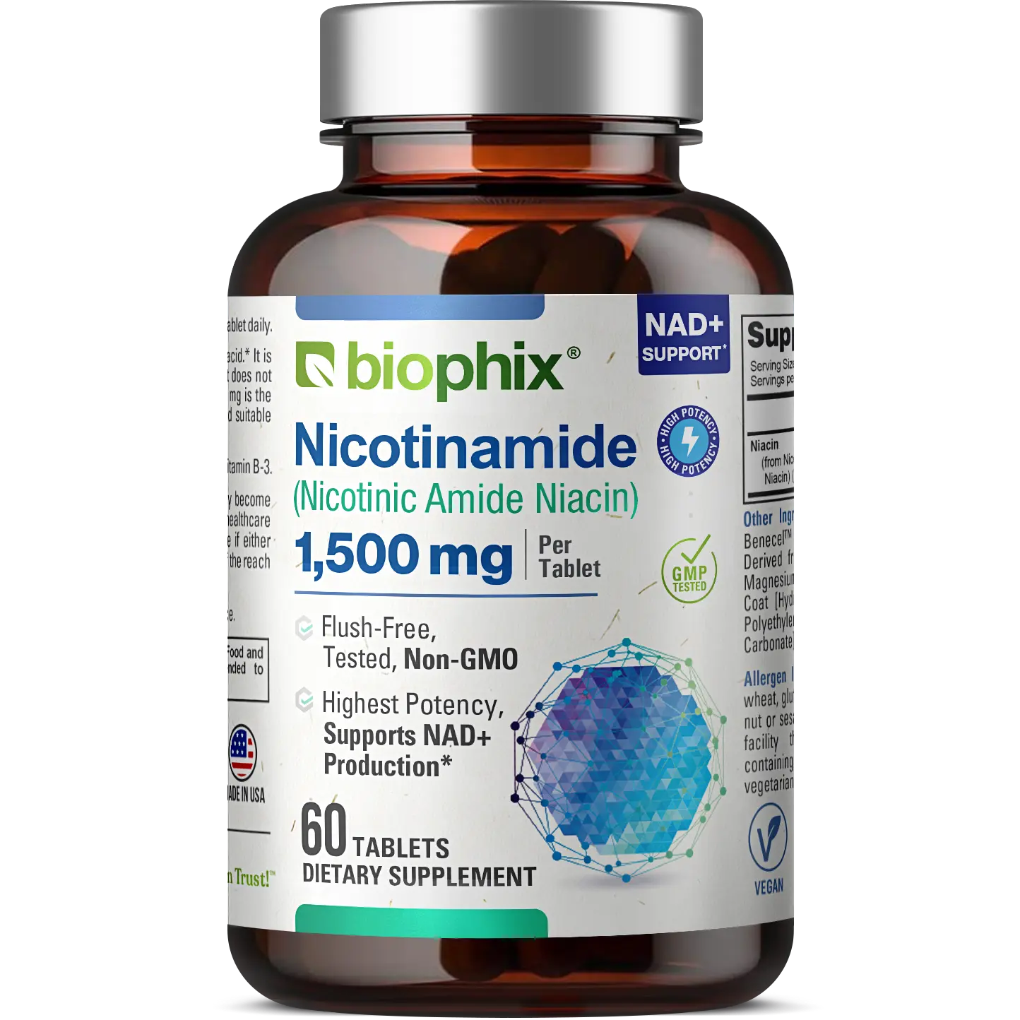 Experience the benefits of our high-quality Nicotinamide supplement, designed for easy incorporation into your daily wellness routine. Trust Biophix® for a clean, reliable, and effective addition to your dietary needs..