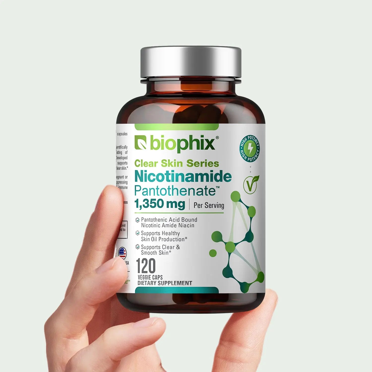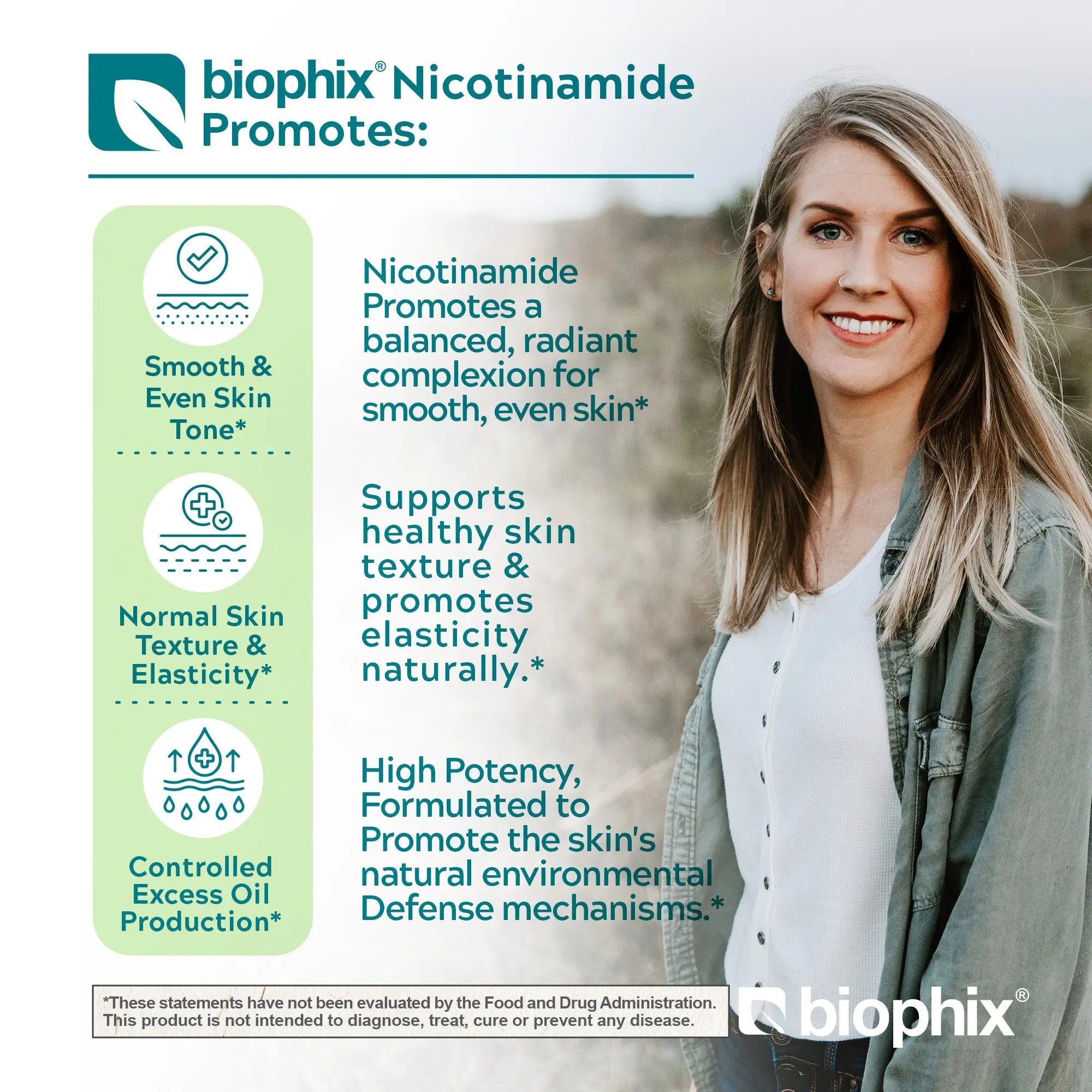Discover Biophix Nicotinamide, a dietary supplement designed to support overall wellness. Nicotinamide, a water-soluble form of vitamin B3, aids in various bodily functions, including energy metabolism. Derived from natural sources like legumes and green leafy vegetables, Nicotinamide plays a crucial role in cellular energy production. Our high-quality formula is manufactured in the USA in a certified facility, ensuring safety and quality. Simply take 2 vegetarian capsules twice daily with meals as part of your routine.