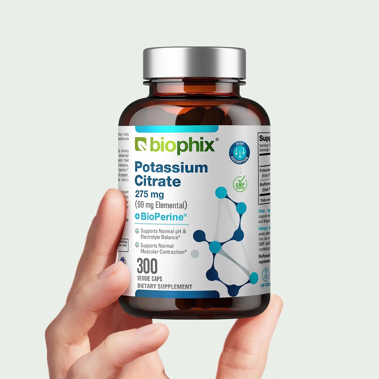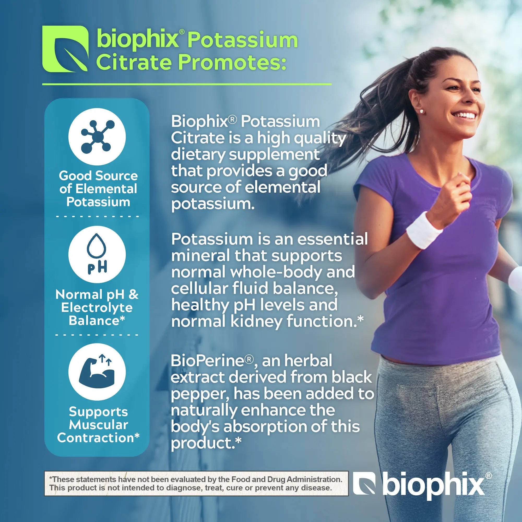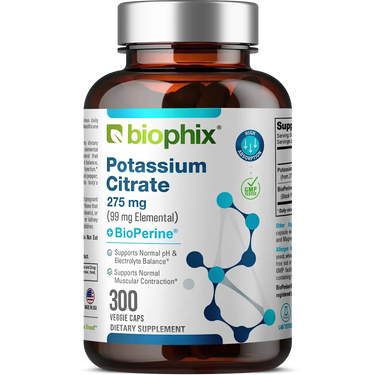 POWERFUL POTASSIUM SUPPORT: Biophix® Potassium Citrate is a natural supplement that packs a potent 275mg of this essential mineral to support healthy muscle function, normal nerve function, optimal electrolyte balance, and promote overall wellness. Potassium is also an essential mineral that supports healthy structure. It has been shown to support healthy blood pressure levels, making it an easy way to support overall cardiovascular health.*