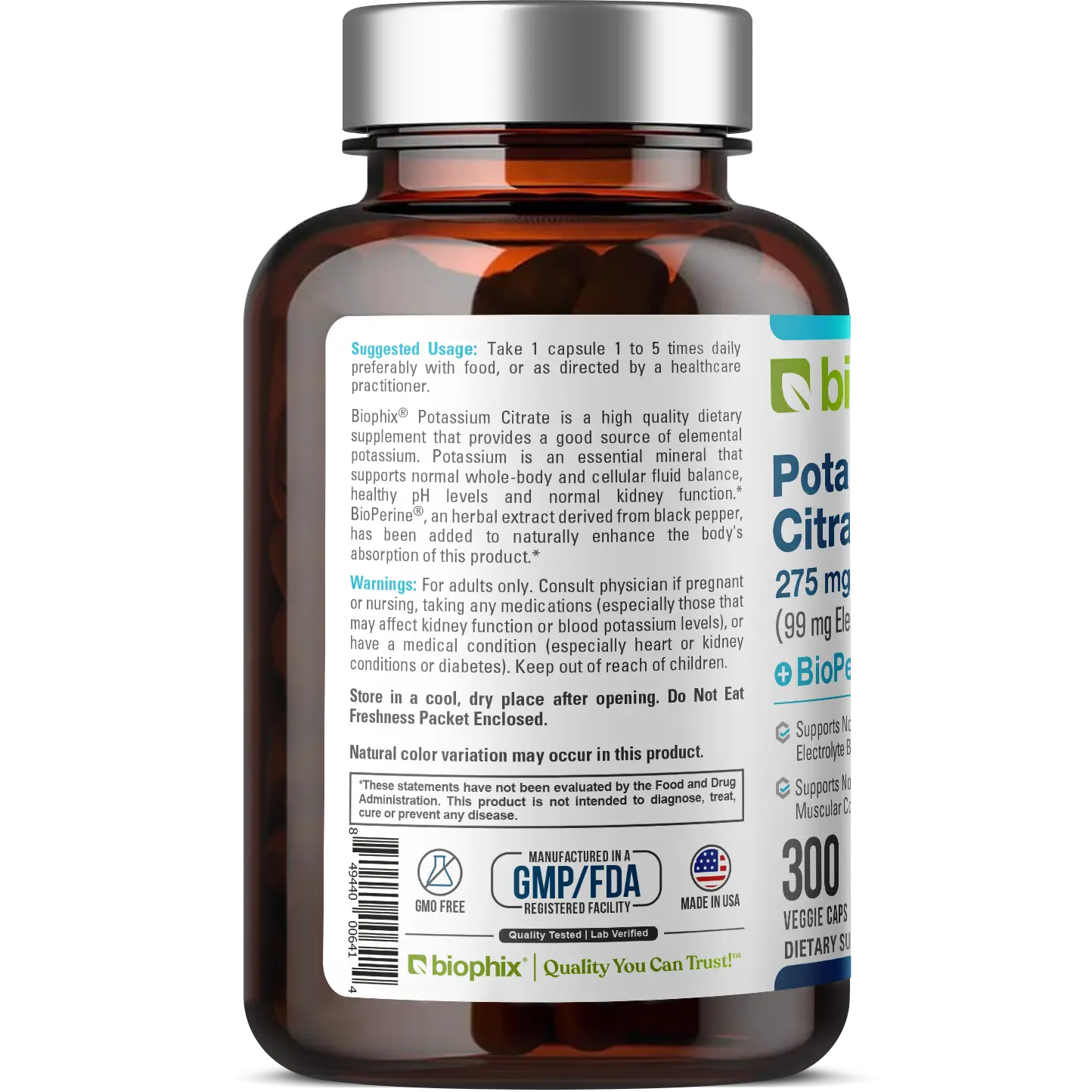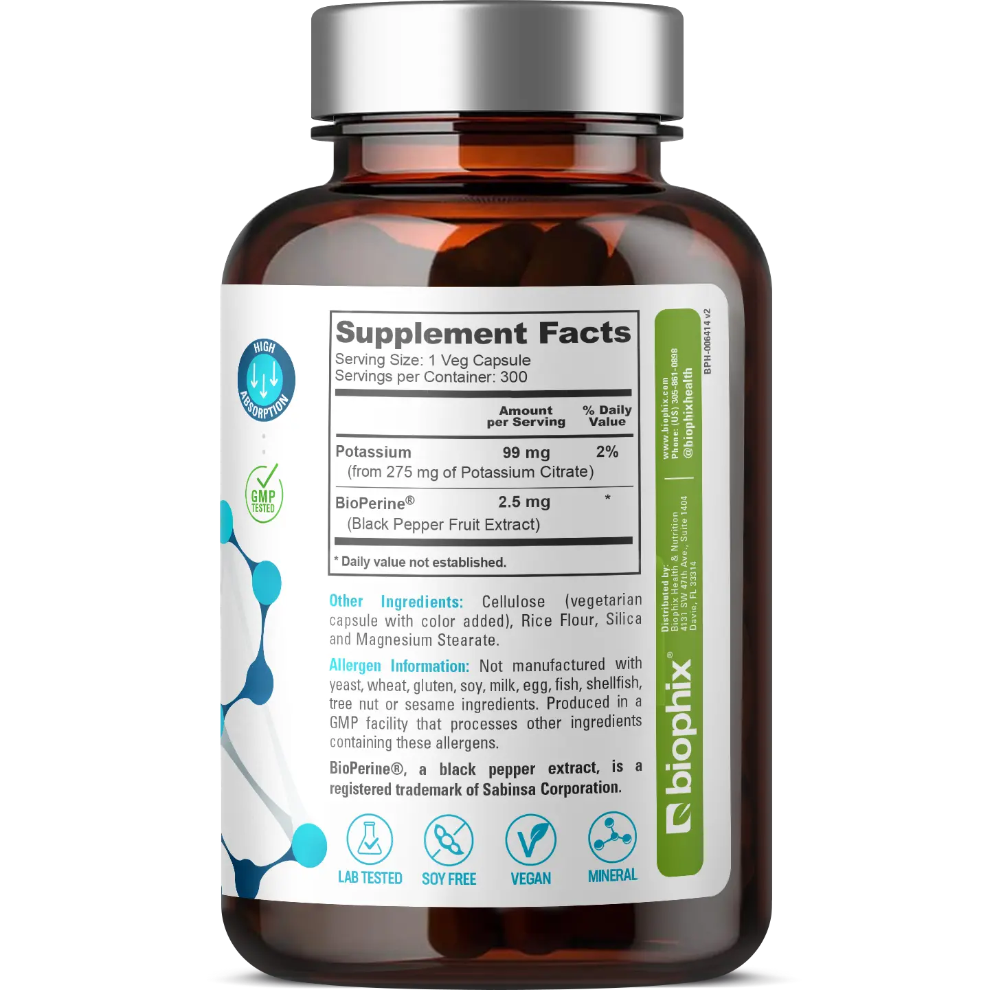 Potassium Citrate 99 mg equivalent to 275 mg with BioPerine 300 Veg Caps