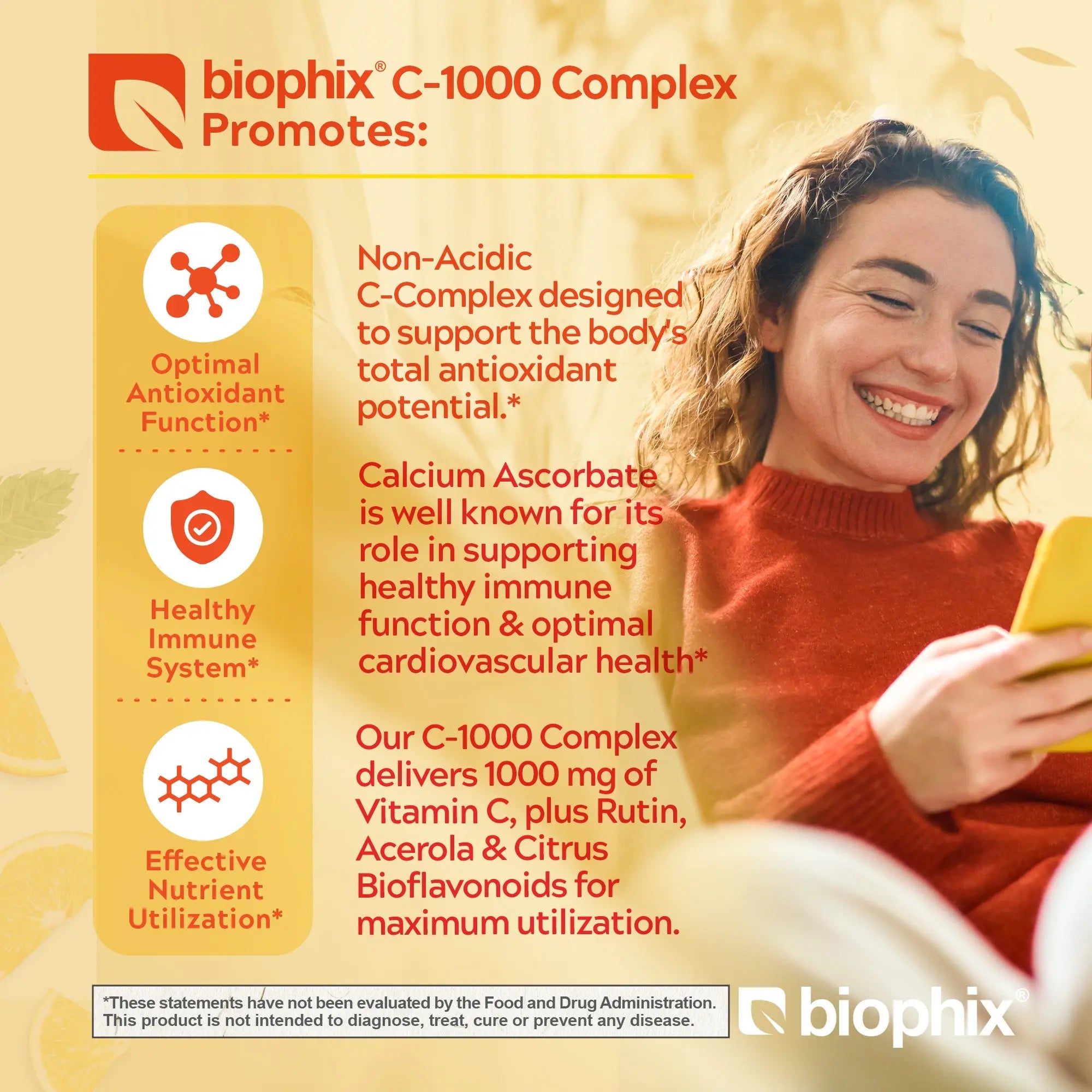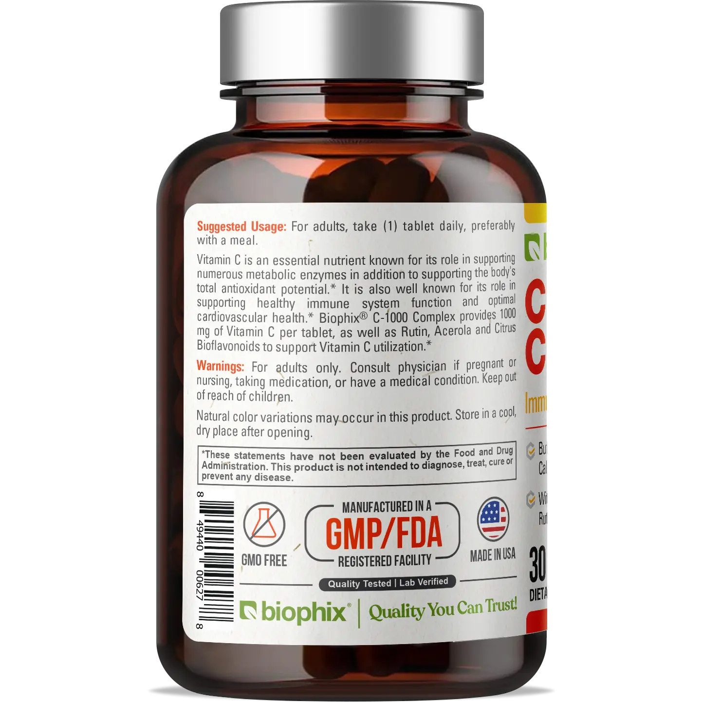 Biophix C-1 000 Complex provides 1000 mg of Vitamin C per tablet, as well as Rose Hips, Acerola and Citrus Bioflavonoids to support Vitamin C utilization.*