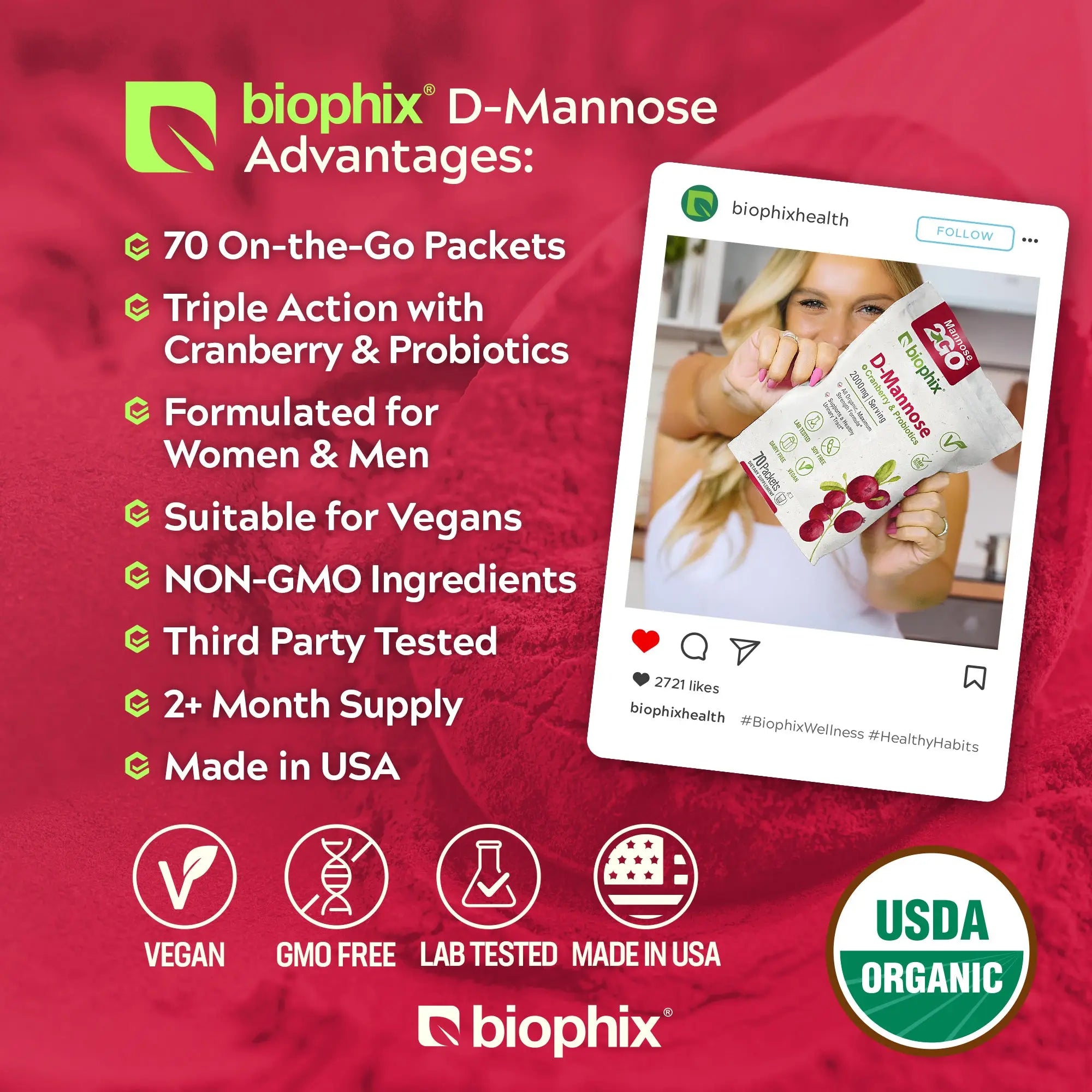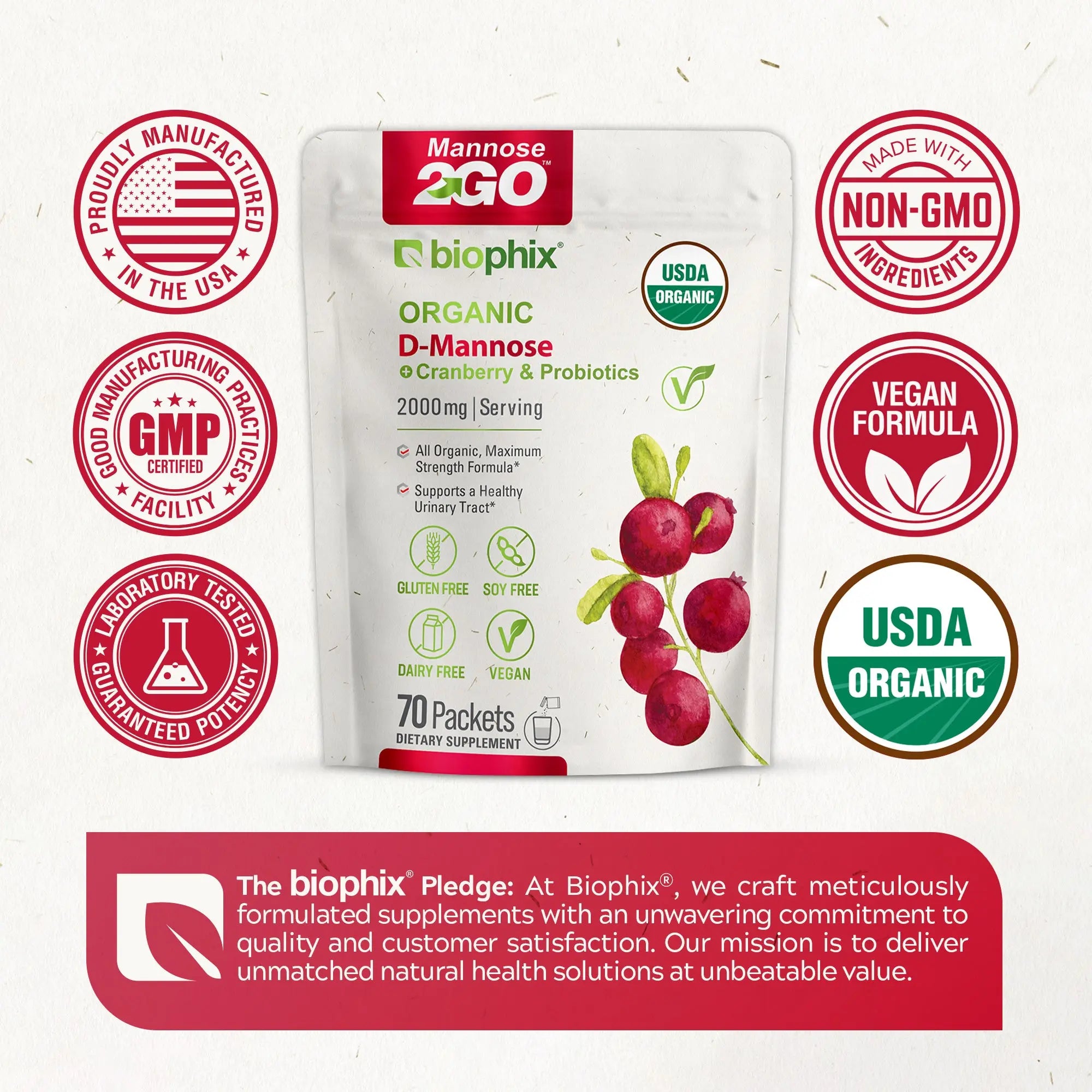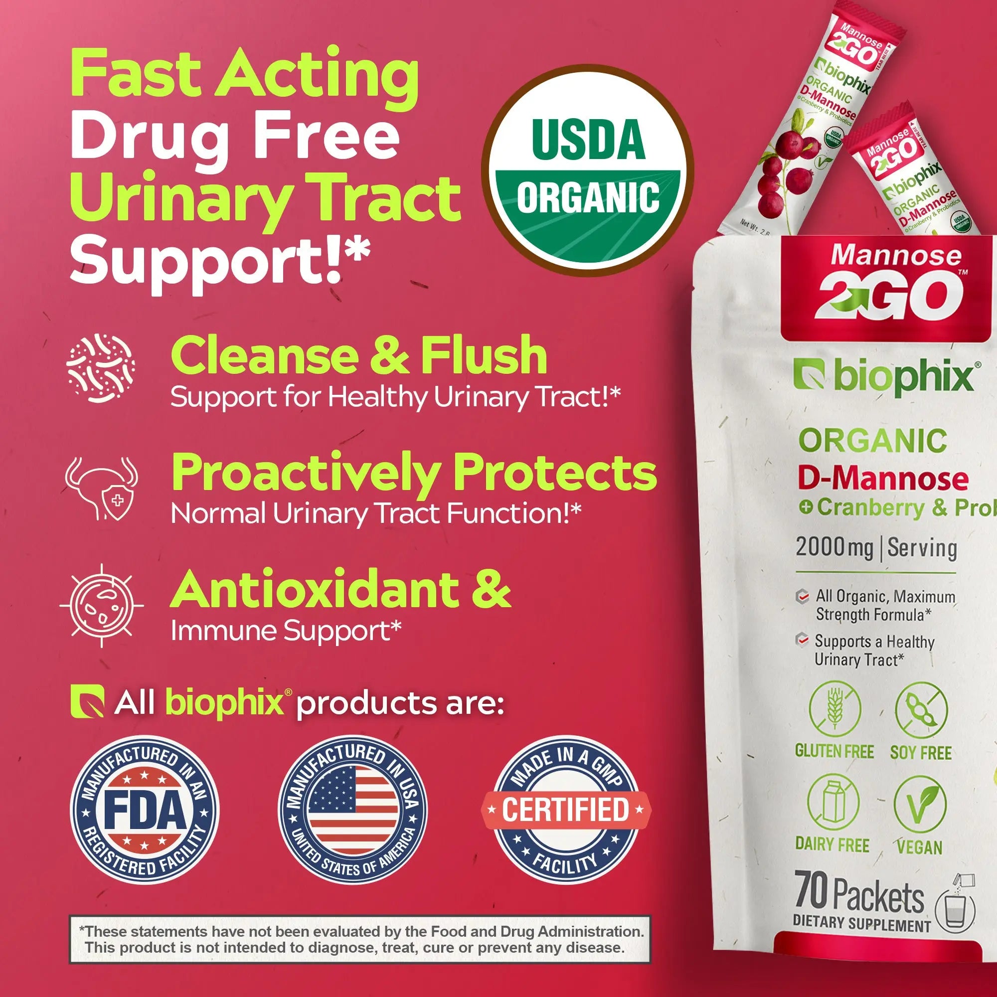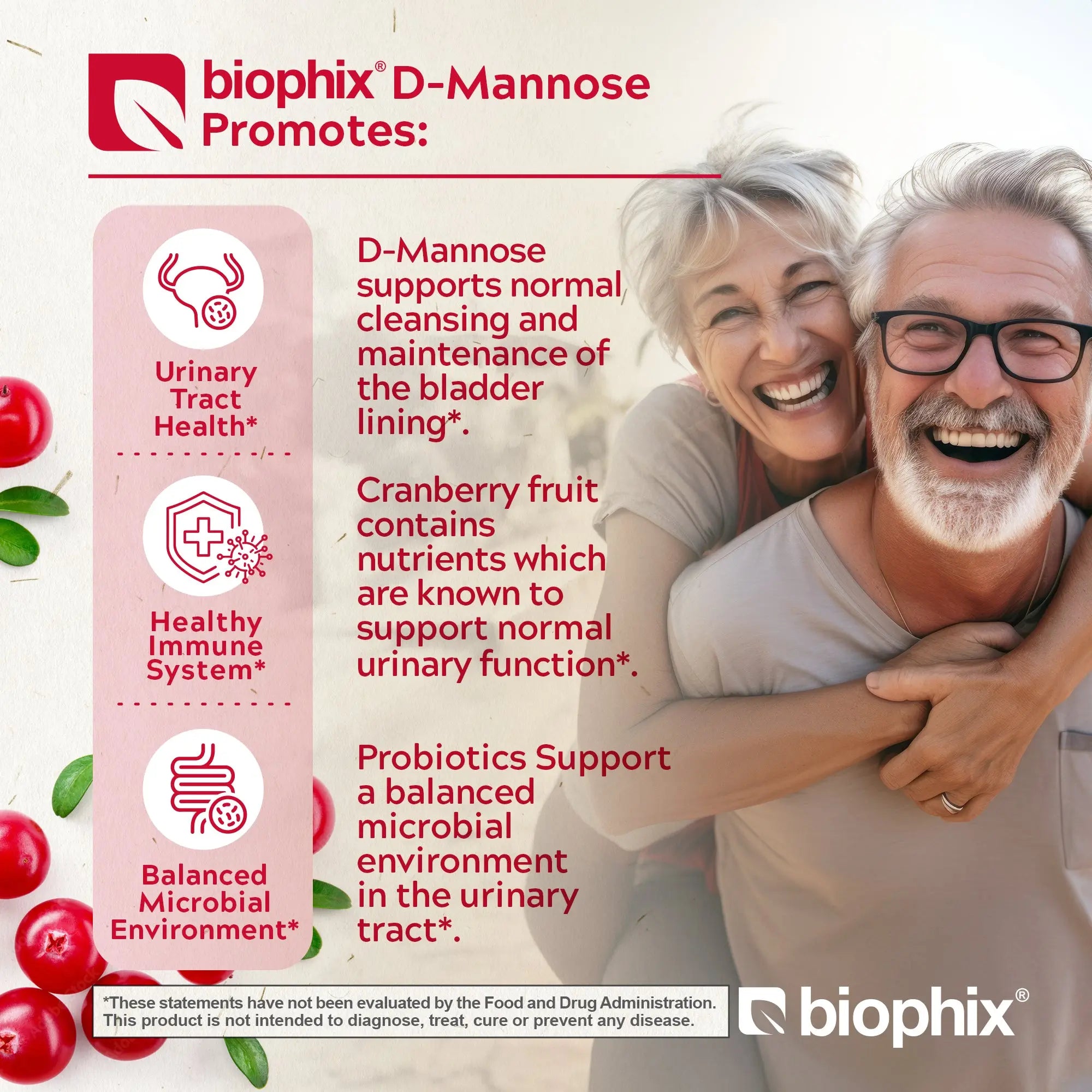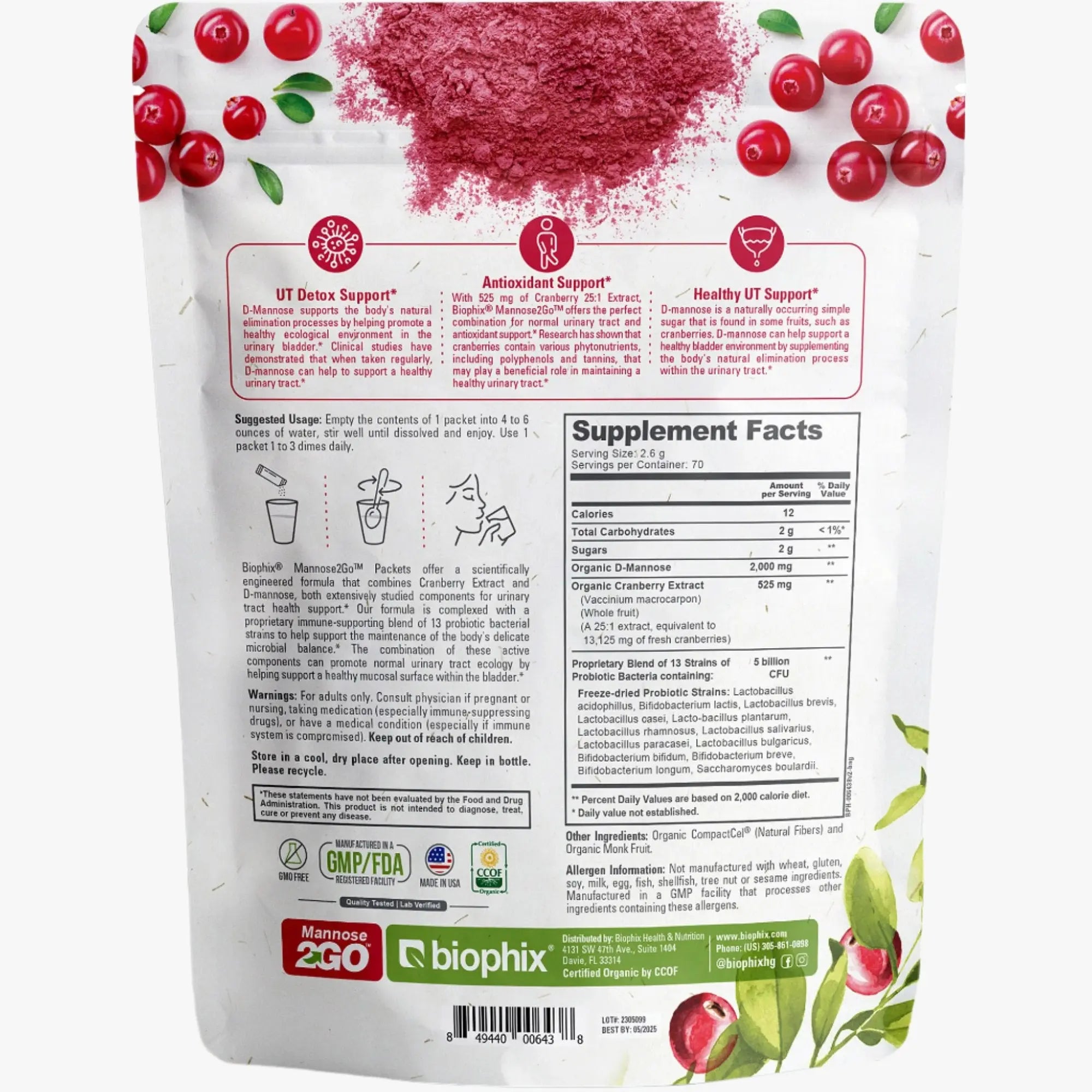 POWERFUL INGREDIENTS: Each packet of Biophix Mannose2GO contains D-Mannose and Cranberry Extract, delivering naturally occurring proanthocyanidins that provide additional support for urinary tract health.* Both Cranberry and D-Mannose have long been recognized for their ability to support a healthy urinary tract environment.*