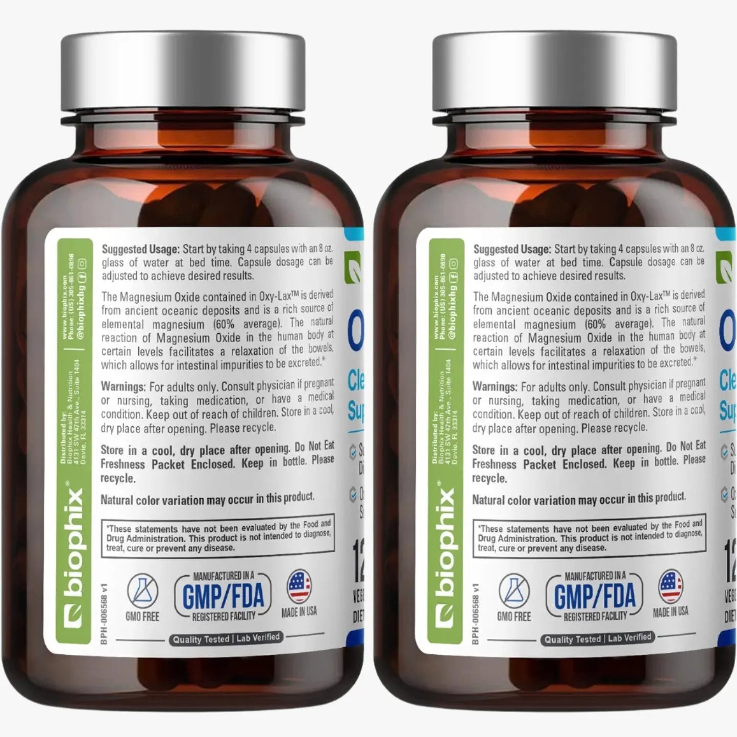 Choosing Biophix Oxy-Lax means opting for a product manufactured in our own cutting-edge NSF certified facility, adhering to strict cGMP standards to ensure safety and efficacy. With our easy-to-swallow, fast-release vegetarian capsules, incorporating Oxy-Lax into your daily routine is simple and hassle-free. These capsules are also ideal for individuals following an active vegetarian or vegan lifestyle.