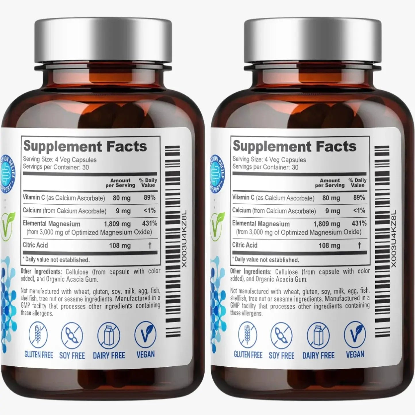 Suggested Usage: Start by taking 4 capsules with an 8 oz. glass of water at bed time. Magnesium Oxide capsule dosage can be adjusted to achieve desired results.