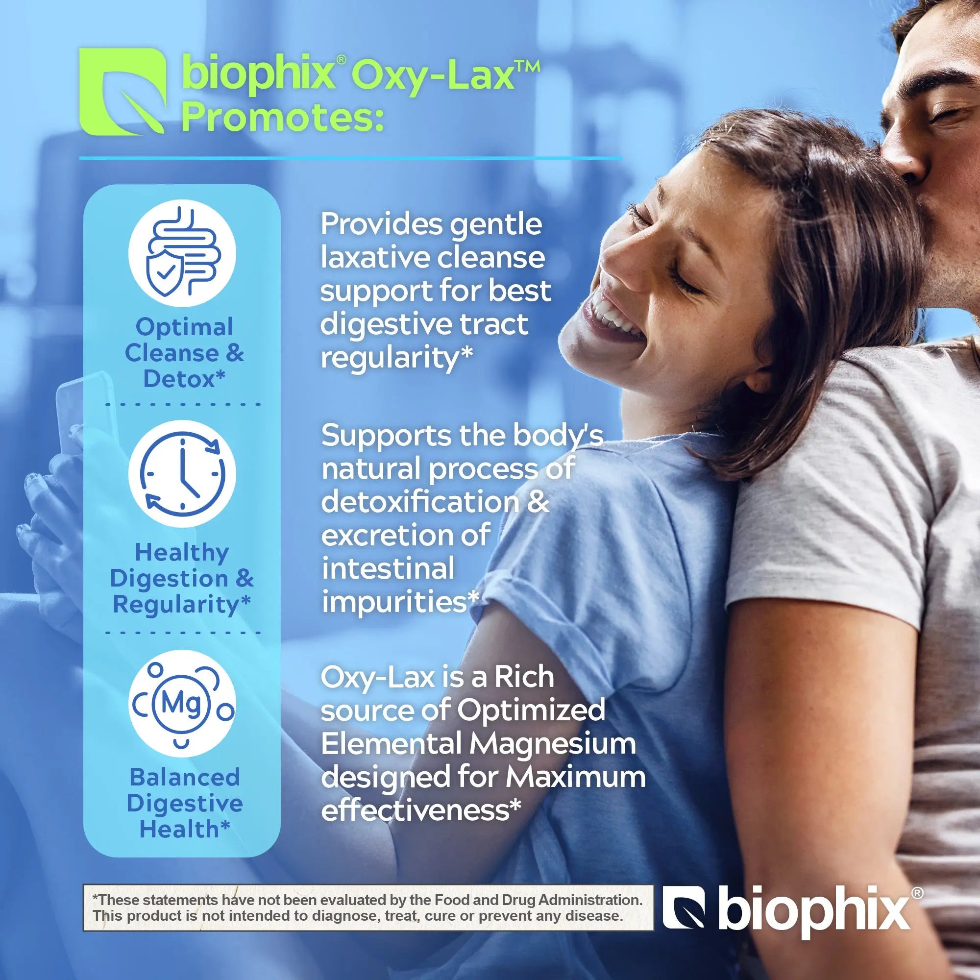 Biophix Oxy-Lax is the ultimate solution for promoting digestive health and supporting the body’s natural defense against occasional constipation!* Our unique formula is enriched with 3000 mg of magnesium oxide from ancient oceanic deposits per serving, a potent source of elemental magnesium designed to promote regularity and alleviate gas and bloating.* To maximize effectiveness, we’ve also added Vitamin C and Citric Acid for enhanced support of gut health and detoxification.*