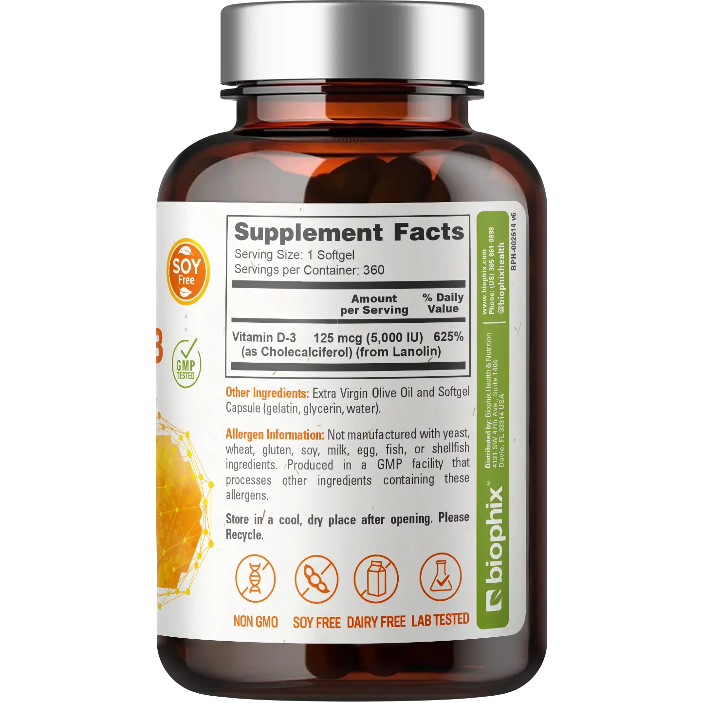 Vitamin D-3 5000 IU High-Potency 360 Softgels