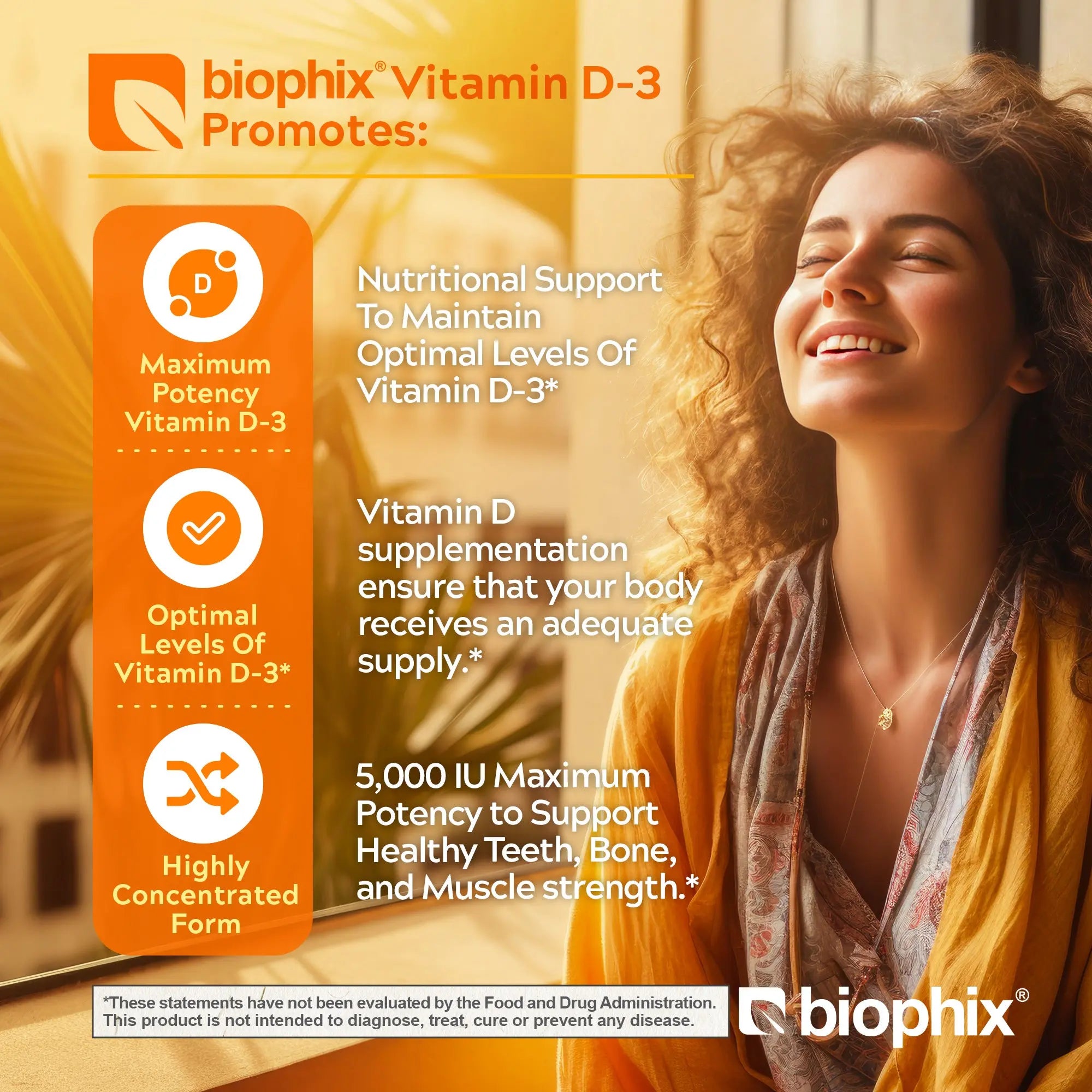 Biophix Vitamin D3 is available in 2000 IU, 5000 IU, 10000 IU and 50000 IU. Also available in Tablets, Capsules, Liquid Drops and Vegetarian Capsules. Search for Biophix D3 to see all available options.